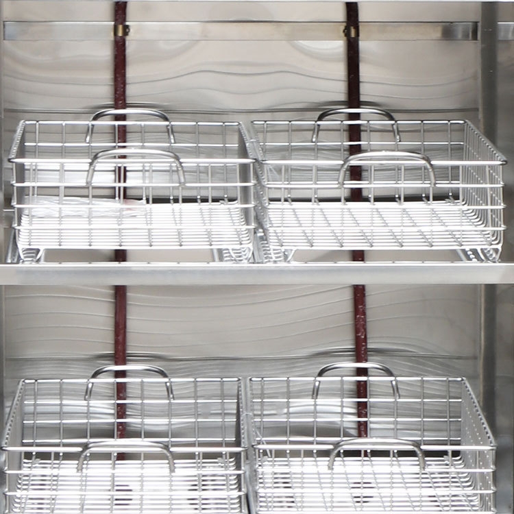 2.利用干式高温方法消毒,使经消毒的餐具没有臭氧、蒸汽、紫外线消毒等方法难免的残留水渍,集餐具消毒与烘干及无菌储存等功能于一身。